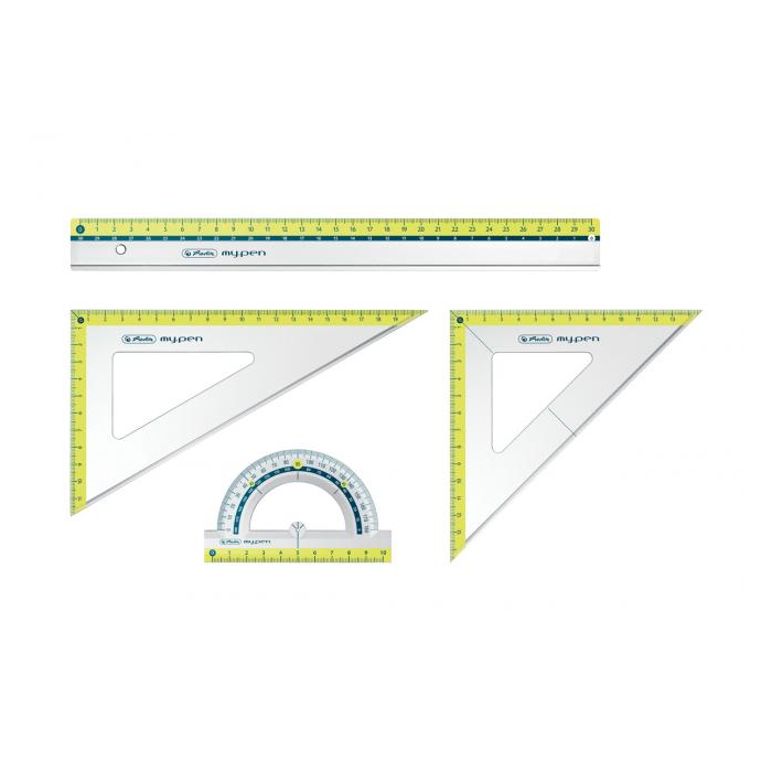 Sada pravítok pre geometriu my.pen 4 diely, plastová - z nelámavého materiálu, mix farieb.