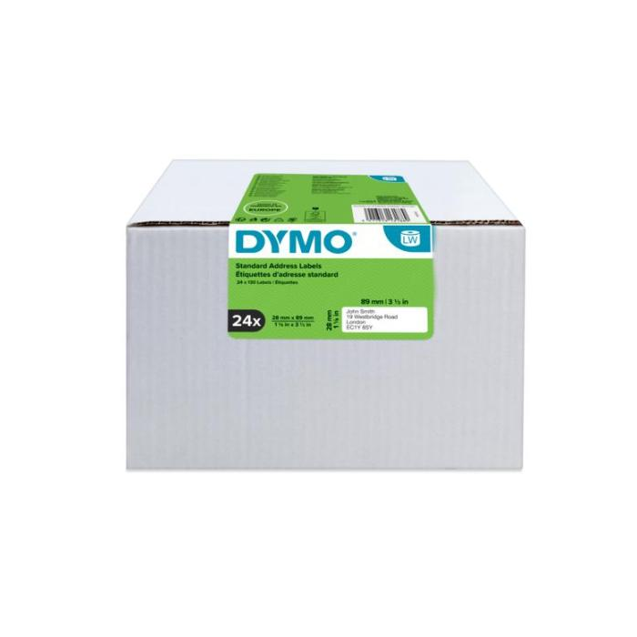 Etikety do tlačiarní Dymo LabelWriter 450 a Labelwriter 450 Duo sú navinuté v rolke. Materiál papier.Farba etikiet biela. Farba: biela Rozmery: 89x28 mm Balenie: 24x130 ks