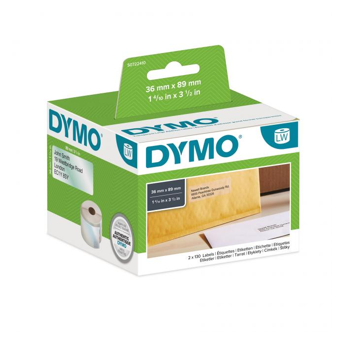 Samolepiace etikety Dymo LW 89x36mm adresné veľké číry plast