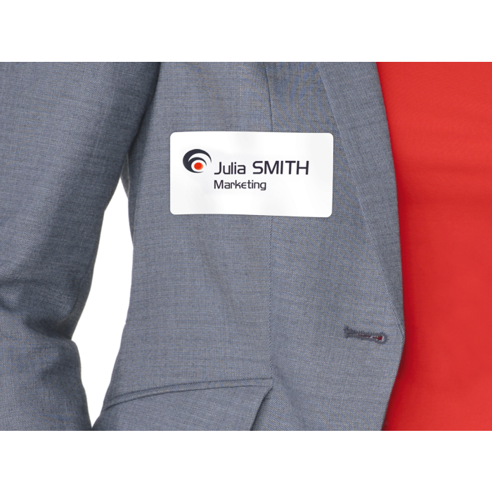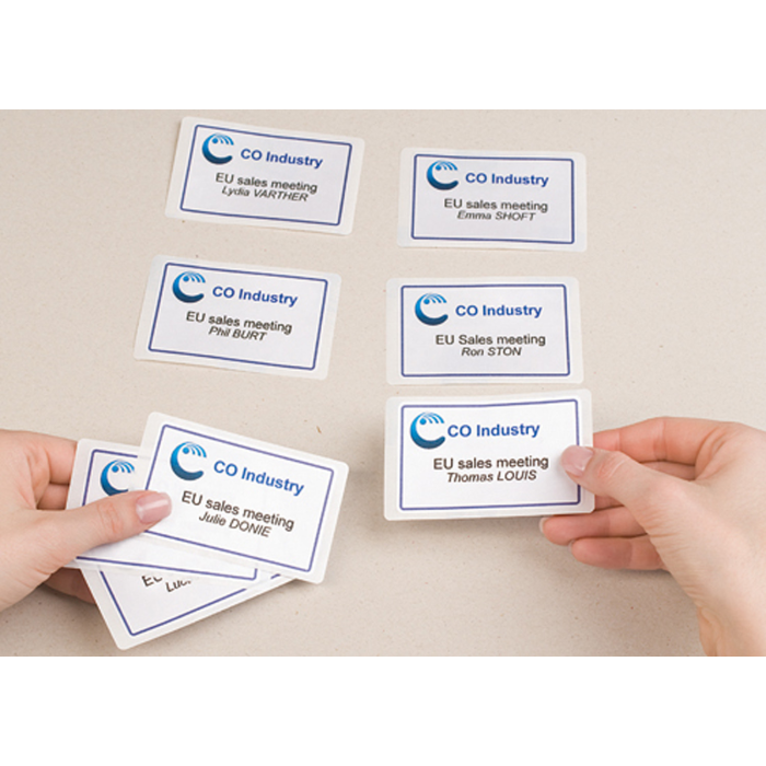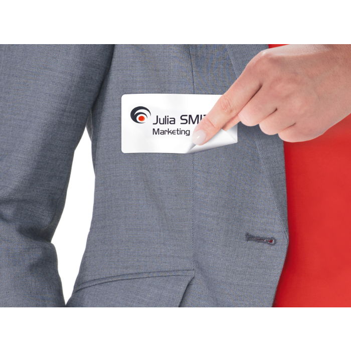Skvelý pomocník pri organizovaní konferencií a seminárov. Menovka sa dá z hárku vybrať aj s podkladovým papierom, na ktorý sa dá po ukončení akcie opäť nalepiť a uschovať pre ďalšie použitie. Menovky držia spoľahlivo na odeve a textíliách a zároveň sú snímateľné bez zanechania stôp po lepidle. Vhodné pre laserové tlačiarne. Balenie 20 hárkov. Rozmery 80 x 50 mm. Farba biela.