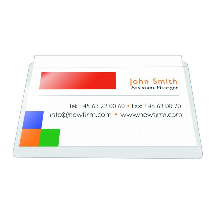 Samolepiace priehľadné vrecká na zanechanie kontaktu na propagačných materiáloch, alebo napr. priloženie vizitky k lekárskym záznamom. Kvalitné a trvácne riešenie poskytuje priestor na mnohé kreatívne spôsoby použitia. Balenie 100 ks. Rozmery 56 × 93 mm.