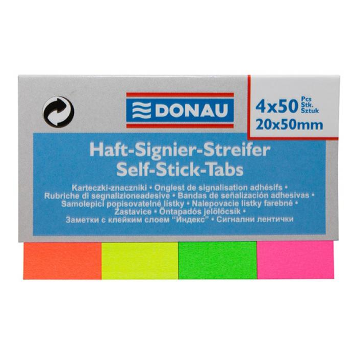Samolepiace záložky Donau 20x50mm neon 4x50 lístkov