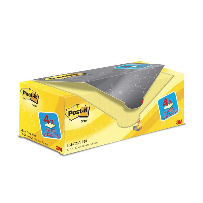 Zvýhodnené balenie žltých bločkov s jednoduchou manipuláciou. Papierový obal roztrhnutím na naznačenom mieste rozdelí balenie na 2 časti, ktoré sa ľahko uskladnia na stole alebo v zásuvke. Rozmery 76 x 76 mm. Počet lístkov 20 x 100.
