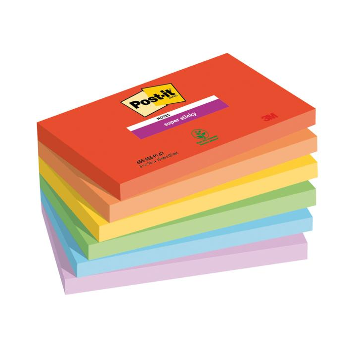 Samolepiaci bloček Post-it Super Sticky PLAYFUL, veľkosť 76x127 mm, 6 bločkov po 90 lístkov