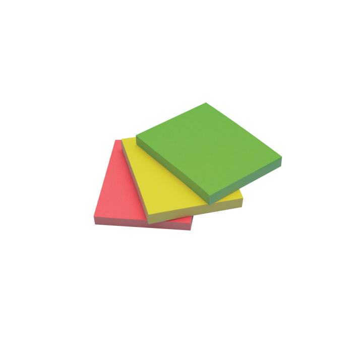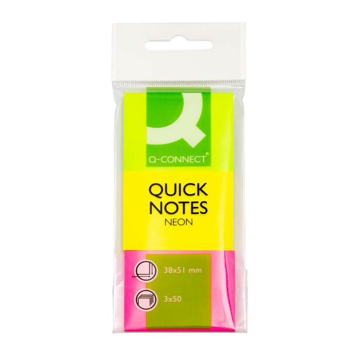 Samolepiaci bloček Q-CONNECT 51x38 mm, zelená, ružová, žltá, 3 bločky po 50 lístkov