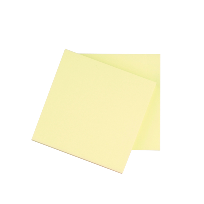 Samolepiace poznámkové bločky v žltej farbe. Rozmery 76 × 76 mm. Počet lístkov 100.