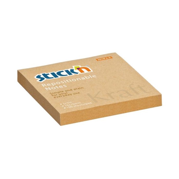 Samolepiace bločky z prírodného hnedého papiera. Sú ľahko odlepiteľné, po odlepení nezanechávajú žiadnu stopu. Väčšie balenie 12 ks. Rozmery 76 x 76 mm. Počet lístkov 100. Farba prírodná hnedá.