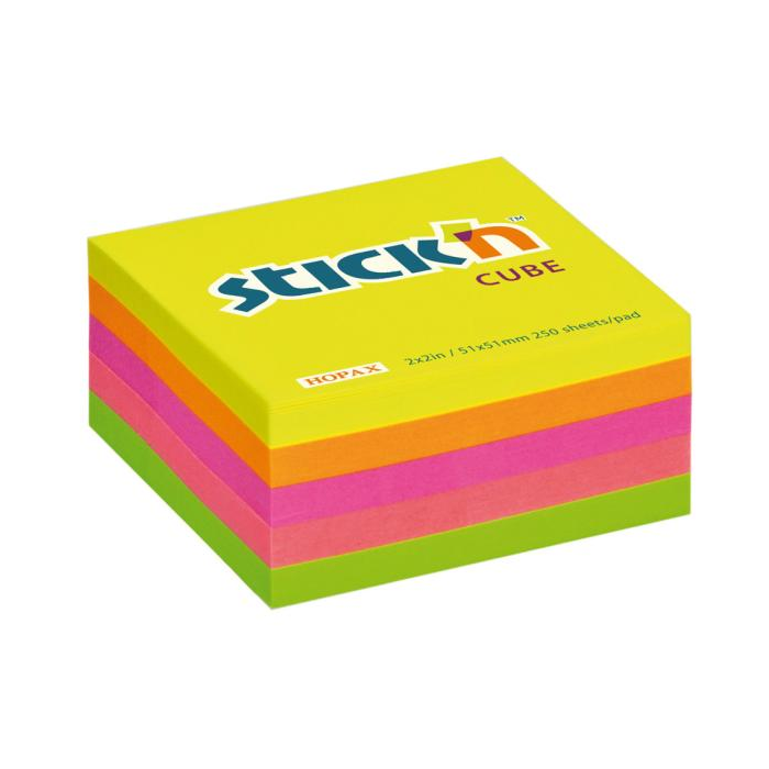 Samolepiace bločky v neónových farbách v tvare mini kocky. Lístky je možné ľahko nalepiť a odlepiť, napriek tomu skvele držia. Nezanechávajú stopy po lepidle. 250 lístkov