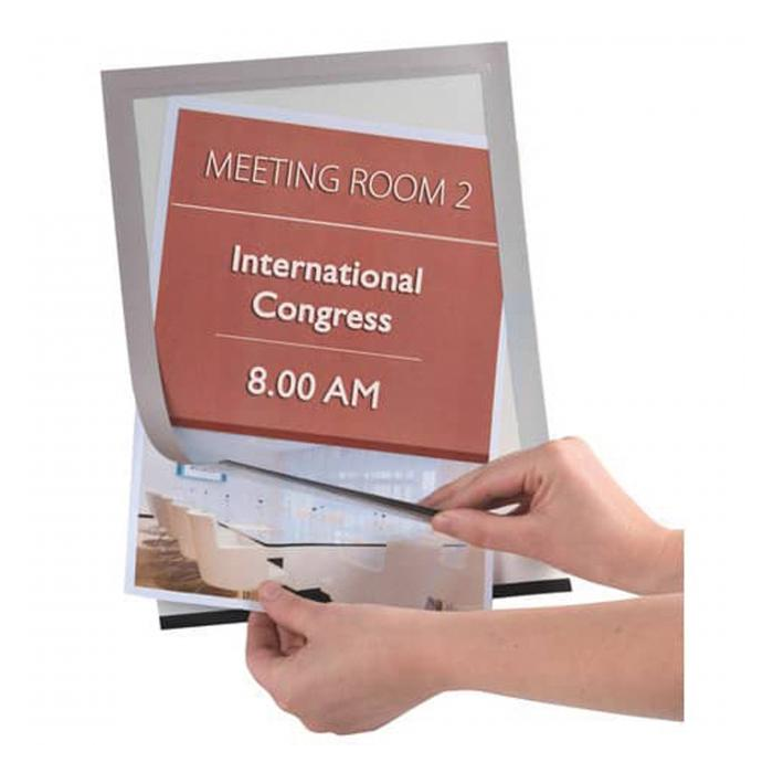 Informačné samolepiace vrecko na prospekty s rámom. Výklopná magnetická predná strana pre rýchlu a ľahkú výmenu dokumentov formátu A4. Samolepiaci podklad priľne na všetky hladké povrchy, ľahko ho odstránite a opätovne prilepíte. Materiál plast. Formát A4. Balenie 2 kusy. Farba strieborná.