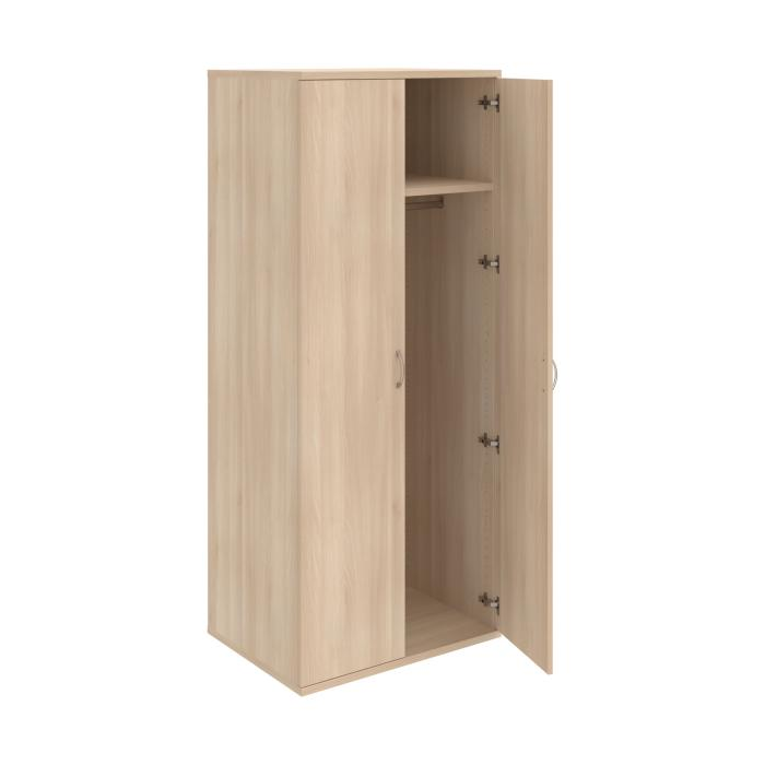 Kancelárske skrine STRONG majú robustnú konštrukciu a vyššiu nosnosť políc ako bežné kancelárske skrine.V ponuke sú skriňové moduly s výškou 185 cm, 111 cm alebo 74 cm a šírky 80 cm alebo 40 cm.Hĺbka všetkých modelov skriňového radu STRONG je 40 cm.Chrbát, vyrobený z 8 mm hrubých dosák, je obojstranne pohľadový, takže skrine môžete použiť ako priestorový deliaci prvok. Hrúbka samotných políc je 25 mm, čo znamená nosnosť 80 kg na 1 policu.Korpusy, dvierka a police skríň sú olepené odolnou 2mm ABS hranou, ktorá garantuje dostatočnú ochranu proti poškodeniu.