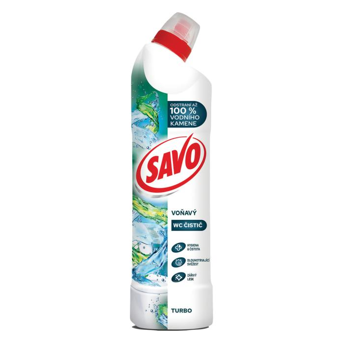 Savo WC tekutý čistiaci a dezinfekčný prípravok je výborný pomocník pre udržanie čistej, dezinfikovanej a žiarivo bielej toalety bez usadenín. Spoľahlivo likviduje baktérie, vírusy a mikroskopické huby. Parfum udrží vašu toaletu sviežo voňavú na dlhý čas.