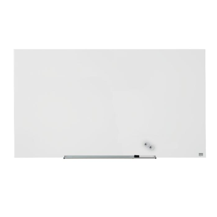 Na širokouhlé sklenené tabule Nobo sa vojdú všetky vaše nápady! Širokouhlý formát a minimalistický rámček maximalizujú využiteľnú plochu na písanie. Systém InvisaMount™, pre jednoduchú inštaláciu na stenu, schová všetky montážne prvky za doskou tabule. Vďaka tomu tabule majú moderný, štýlový a ničím nerušený dizajn. Súčasťou tabule je taktiež odnímateľný hliníkový odkladač na popisovače. Magnetický sklenený povrch zaručuje najlepšiu možnú mazateľnosť a je vhodný na každodenné používanie. Veľkosť uhlopriečky: 57” (144 cm)