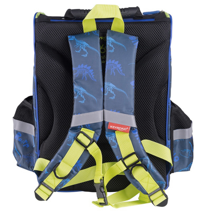 Extrémne ľahká školská taška prispôsobená veku a hmotnosti dieťaťa, čo znamená, že dodatočne nezaťažuje chrbticu a kĺby, vhodné pre žiakov 1. a 2. ročníka ZŠ. Profilovaná a vystužená konštrukcia pomáha udržiavať správne držanie tela. Vstavané ventilačné kanáliky zaisťujú dostatočné prúdenie vzduchu, takže batoh neprehrieva chrbát dieťaťa, široké a mäkké popruhy s nastaviteľnou dĺžkou zvyšujú komfort, nezaťažujú ramená a umožňujú prispôsobenie školskej tašky výške dieťaťa. S hrudným popruhom spájajúcim ramenné popruhy, ktorý zabraňuje skĺznutiu z pliec a odľahčuje chrbát, dodatočný stabilizačný panel chrániaci bedrovú časť. Pogumovaná rukoväť a uzamykacie gombíky umožňujú ľahké a pohodlné držanie, vybavená funkčnou hlavnou priehradkou s dodatočnou priehradkou, ktorá uľahčuje organizáciu a rýchly prístup k potrebným veciam. Má ďalšie vonkajšie vrecko na zips a dve bočné, elastické vonkajšie vrecká na nápoje alebo iné drobnosti. Rozmery: 38 x 28 x 18 cm.