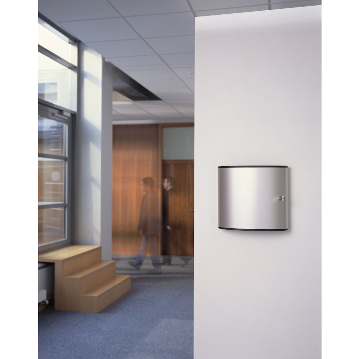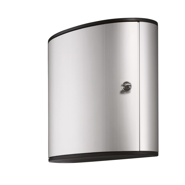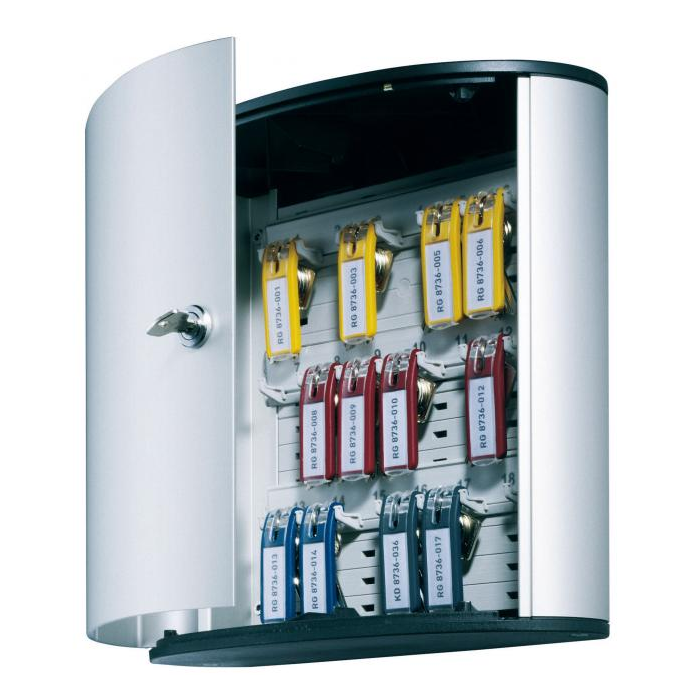 Skrinka na 18 kľúčov s dvierkami, otvárajúcimi sa z dôvodu lepšej obsluhy v 180° uhle. Jednoduchá montáž na stenu. Súčasťou balenia je montážna sada, 2 bezpečnostné kľúče a 6 menoviek na kľúče v rôznych farbách. Farba strieborná.