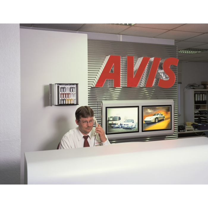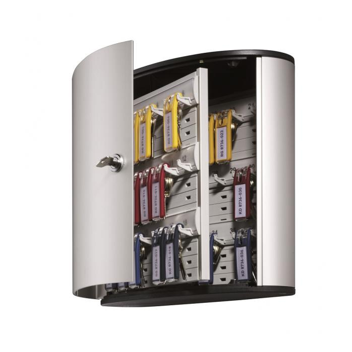 Skrinka na 36 kľúčov s dvierkami, otvárajúcimi sa z dôvodu lepšej obsluhy v 180° uhle. Jednoduchá montáž na stenu. Súčasťou balenia je montážna sada, 2 bezpečnostné kľúče a 6 menoviek na kľúče v rôznych farbách. Farba strieborná.