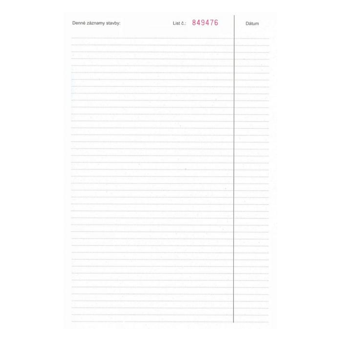 Stavebné tlačivo. Stavebný denník, číslovaný, A4, kniha, 158 listov.