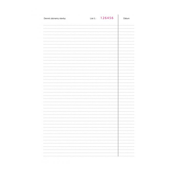 Stavebné tlačivo. Stavebný denník, číslovaný, A4, kniha, 158 listov.