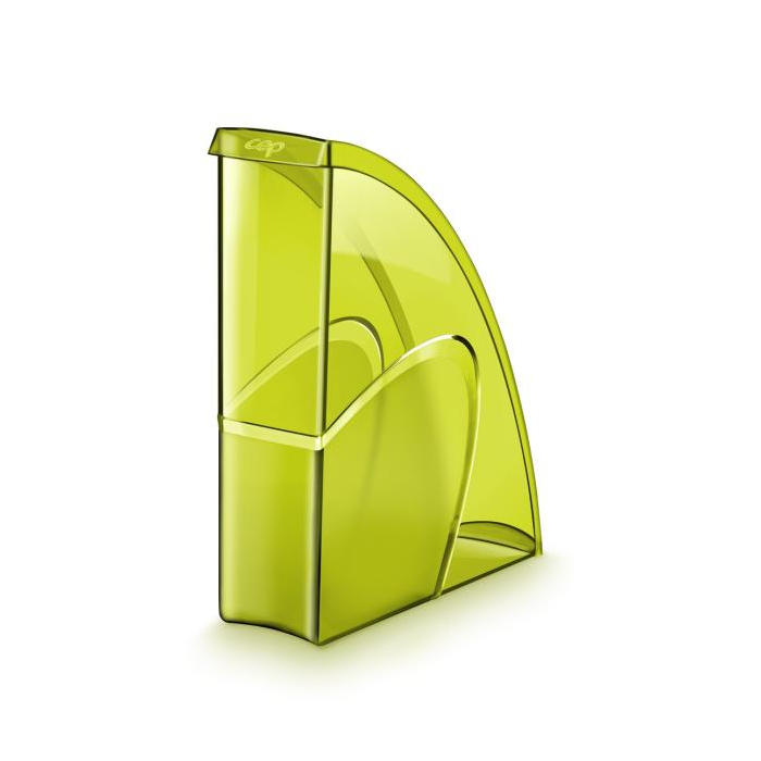 Stojan na časopisy s možnosťou vertikálneho alebo horizontálneho postavenia má elegantné línie, zvýraznené materiálom s kontrastným matným povrchom na hladkom pozadí. Vhodný na dokumenty do veľkosti 24 × 32 cm. Kapacita 700 listov (80 g / m²), rozmery 270 × 85 × 310 mm. Materiál 100% recyklovateľný vysokokvalitný plast. Väčšie balenie 10 ks. Farba transparentná zelená.