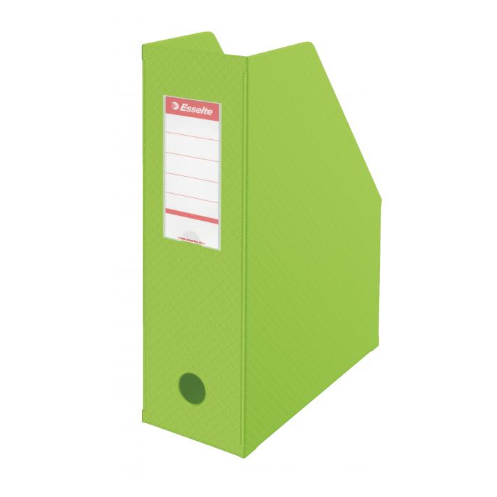 Skladací ohybný stojan z PVC na materiály do formátu A4 s otvorom na chrbte a vymeniteľným popisovateľným papierovým štítkom. Rozmery (v×h) 32×24 cm, šírka chrbta 10 cm. Väčšie balenie 10 ks. Farba: zelená Šírka chrbta: 10 cm