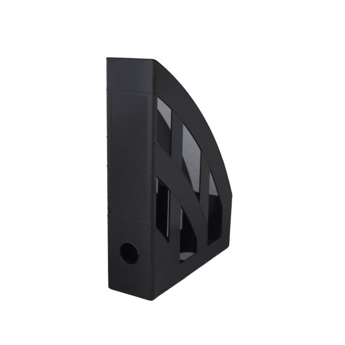 Plastový stojan na časopisy zaoblený dizajn - odolný materiál, vymeniteľná chrbtová etiketa. Farba čierna.