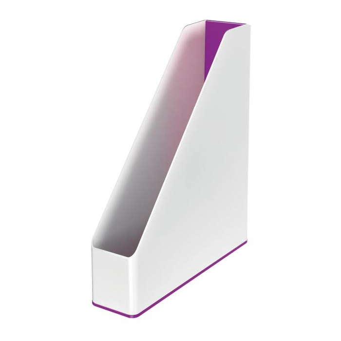 Stojan na bezpečné ukladanie časopisov a katalógov v dvojfarebnom prevedení v metalických farbách WOW s lesklým povrchom. Farba purpurová.
