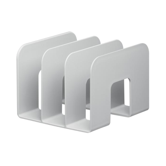 Trojpriehradkový stojan na katalógy pre flexibilné použitie. Vyrobený z recyklovaných plastov v kvalite Blue Angel. Priehradky široké 65 mm. Jednoduché zasúvanie a vyberanie. Vhodný pre časopisy, brožúry, katalógy atď. Rozmery: 215 x 165 x 210 mm (Š x V x H). Farba sivá.