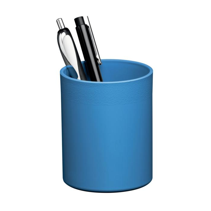 Praktický, odolný stojan na perá. Vyrobený z recyklovaných plastov v kvalite Blue Angel. Vhodný na perá, nožnice, zvýrazňovače atď. Rozmery: Ø 80 mm, výška 100 mm. Farba modrá.
