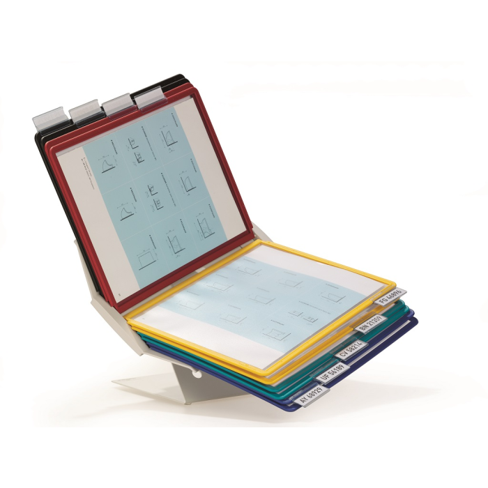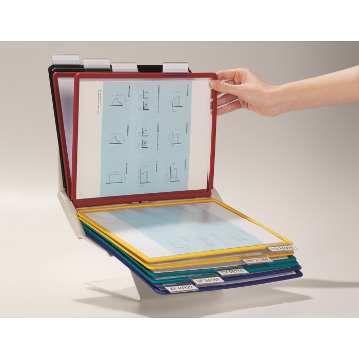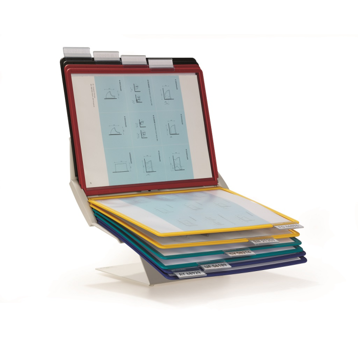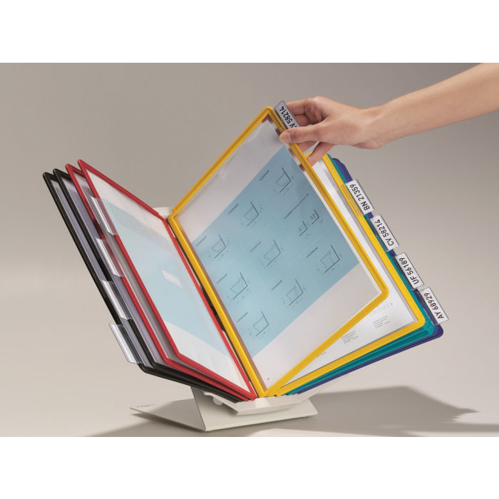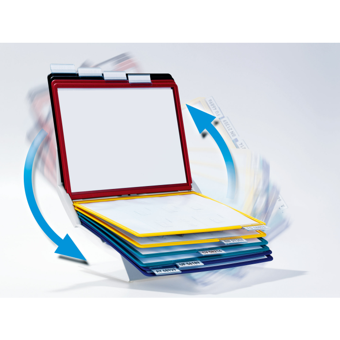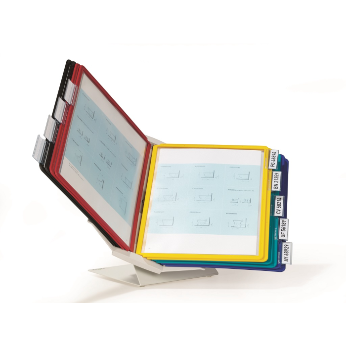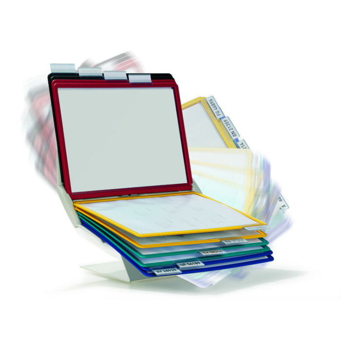 Variabilný a moderný panelový systém, ktorý je možné umiestniť na stôl alebo upevniť na stenu. Držiak panelov je možné natáčať, čo umožní horizontálne aj vertikálne listovanie. Je dodávaný s 10 panelmi. Farba stojana sivá, panely sú dodávané v mixe farieb (čierna, červená, žltá, zelená a tmavomodrá).