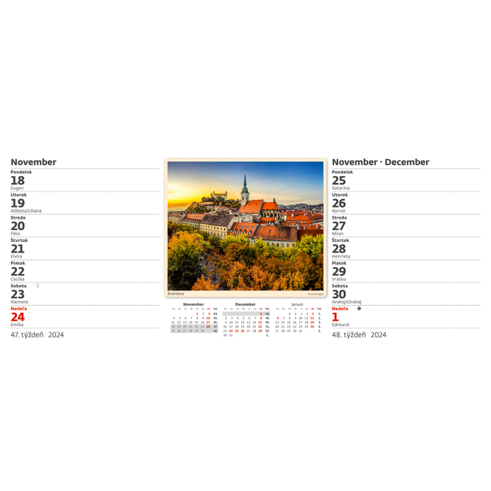 Stolový kalendár riadkový 32,1x13,4 cm - Mestá Slovenska 2026