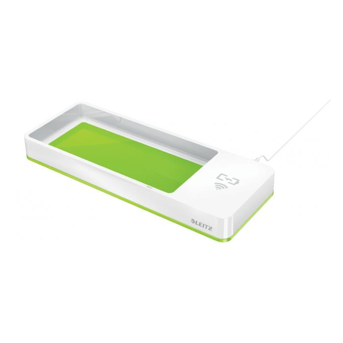 Výrazný moderný stolový organizér v prémiovej kvalite značky Leitz, v módnom dvojfarebnom vyhotovení a so štýlovým lesklým povrchom. Funkcia bezdrôtového nabíjania pre vždy plne nabitý telefón bez nutnosti pripájať káble.