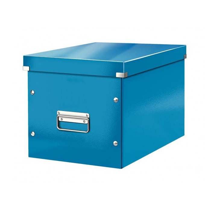 Atraktívna a štýlová krabica na ukladanie vysokých predmetov alebo vecí s oblým tvarom. Rýchle a jednoduché poskladanie vďaka gombíkovému mechanizmu a možnosti zloženia (ak nie je krabica potrebná, je možné ju rozložiť a zaberie menej miesta). Moderný dizajn a farby osviežia vašu kanceláriu aj domov. Lesklý laminovaný povrch vytvára prvotriedny vzhľad, zvyšuje odolnosť a ľahko sa čistí. Odolné kovové príchytky na pohodlnú manipuláciu Patentovaná konštrukcia zaručuje vyššiu ochranu proti náhodnému otvoreniu krabice pri prenášaní ťažkých vecí. Materiál pevný kartón s polypropylénovou lamináciou. Rozmery 320 x 310 x 360 mm. Farba modrá.