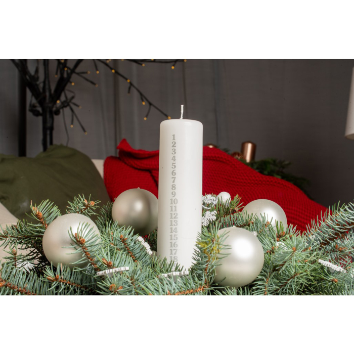 Sviečka kalendár, 50x250 mm, strieborná potlač, biela