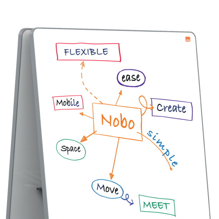 System Move & Meet ponúka maximálnu flexibilitu v akomkoľvek pracovnom prostredí a je ľahko nakonfigurovaný tak, aby dokonale vyhovoval vašim potrebám. Vybavený mobilnou základňou a 2 x odnímateľnými obojstrannými magnetickými tabuľami, systém pojme až 4 x obojstranné ľahké biele tabule alebo nástenky vytvárajúce rozsiahlu písaciu alebo zobrazovaciu plochu na zapisovanie vašich projektových plánov a nápadov. Vďaka modernému a inovatívnemu dizajnu zakrivených rohov s protišmykovým lemom budú dosky doplnkom každého prostredia. Testované podľa DIN EN 14434, certifikované TUV/GS. Kompletný so 4 perami na tabuľu, handričkou na gumu na tabuľu z mikrovlákna a dvoma integrovanými odnímateľnými zásobníkmi na perá. Rozmer každej tabule 1800 x 900 mm.