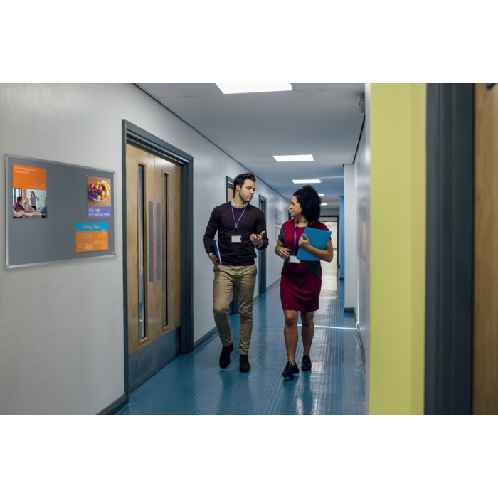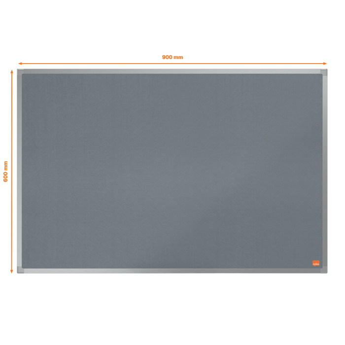 Plstená nástenka s eloxovaným hliníkovým rámom a upevnením do steny v rohoch na pripevnenie a zobrazenie vašich oznámení. Veľkosť: 900 x 600 mm. Farba sivá.