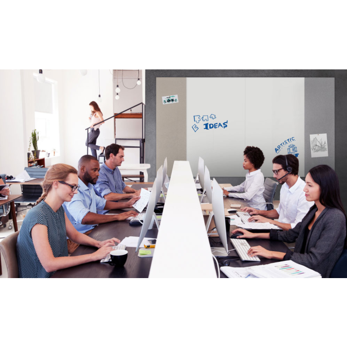 Riešenie, pomocou ktorého vytvoríte z kancelárskej steny nekonečnú plochu na písanie. Wall-up znamená kvalitu a intenzívne používanie. Zmeňte každú stenu na vysokokvalitný keramický, zapisovateľný, zmazateľný a magnetický povrch bielej tabule, odolný voči poškriabaniu. Tabuľové dosky bez rámu možno zavesiť vertikálne a mozno ichkombinovať do jedného veľkého písacieho povrchu. Za predpokladu používania príslušenstva Legamaster výrobca garantuje 25-ročnú záruku. Súčasťou balenia je upevňovacia súprava, montážny návod, šablóna na vŕtanie a návod na čistenie. Rozmer 200 x 59,5 cm. Farba biela.