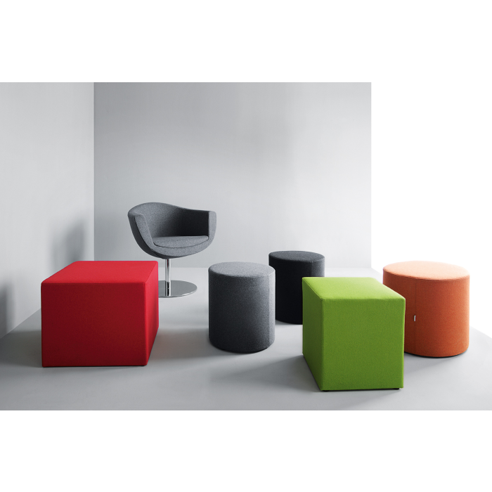 Taburety a stolky sú dostupné v dvoch veľkostiach a v dvoch tvaroch - okrúhly a štvorec.
