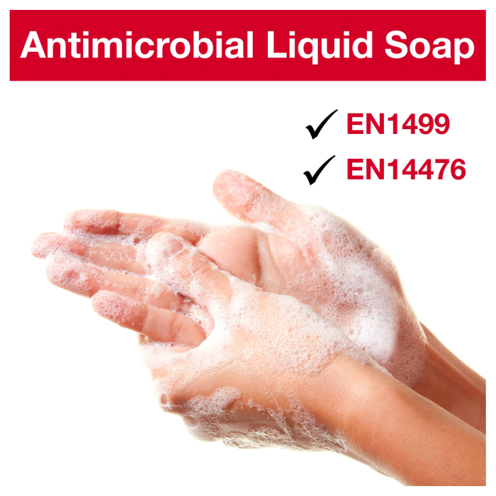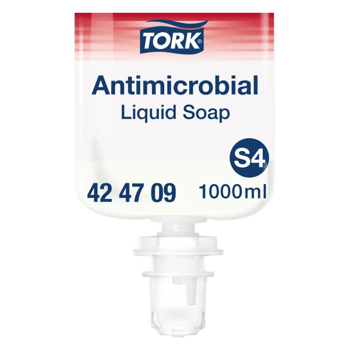Tork antimikrobiálne tekuté mydlo na ruky na základe kyseliny mliečnej je nekompromisné k problémovým mikroorganizmom a dokonalé na použitie v prostredí na spracovanie potravín. Zloženie obsahuje 100 % rastlinné aktívne zložky. Zloženie je 100 % biologicky odbúrateľné. Vhodné pre všetky Tork zásobníky na mydlá a dezinfekčné prostriedky (S4).