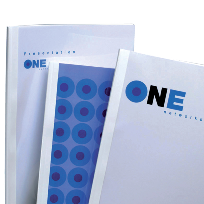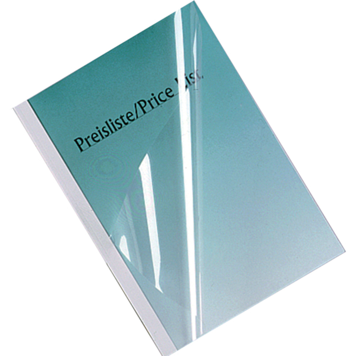 Priehľadné predné obálky z PVC s hrúbkou 150 mikrónov zaručujú jednoduchú čitateľnosť titulnej strany, zadné obálky z lesklého kartónu Silk White 240 g/m2 zaisťujú vysokú tuhosť