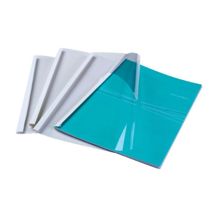 Obálka k zariadeniam na tepelnú väzbu s prednou stranou z priehľadnej polyesterovej fólie a zadnou stranou z bieleho kartónu hrúbky 200 g v saténovej úprave. Kapacita listov 101-120. Balenie 100 kusov.