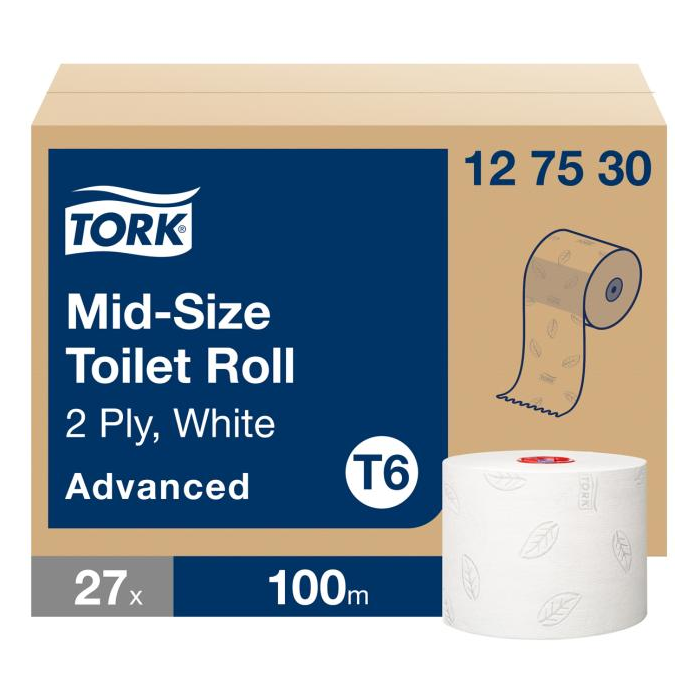 Toaletný papier 2-vrstv. TORK Mid-size biely, návin 100m T6 (27 ks)