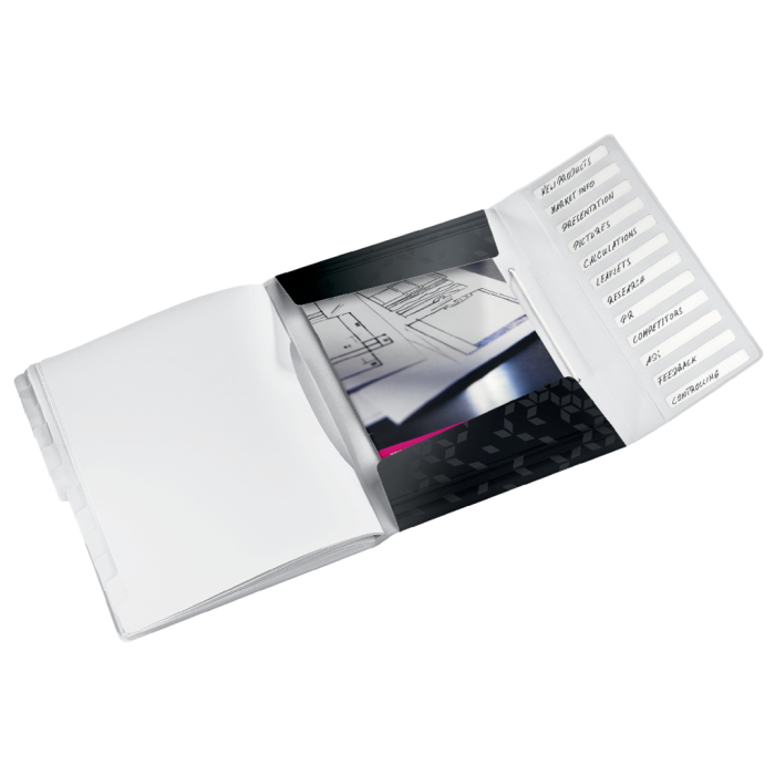 Vysokokvalitná PP triediaca kniha v žiarivých WOW farbách s dvojfarebným efektom. Ideálne na prezentáciu či uloženie dokumentov a ich rozdelenie na 12 dielov. Ideálne na dokumenty A4, štandardné zložky a puzdrá. Kapacita 200 hárkov (80 g/m2). Materiál PP (Polypropylén) fólia. Farba čierna.