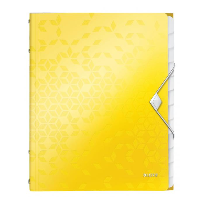 Nepriehľadné triediace knihy z polypropylénu s gumičkou na organizáciu a triedenie dokumentov formátu A4. Trojchlopňové obaly na zadnej strane na uloženie voľných listov, obal na register v zadnej chlopni. V dizajne rady WOW v žiarivých farbách. Kapacita 200 listov. Prevedenie 12 oddielov. Väčšie balenie 4 ks. Farba žltá.
