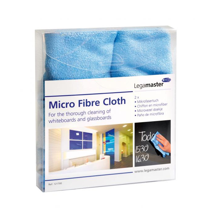 Utierka z mikrovlákna na stieranie bielych a sklenených tabúľ. Môže sa používať za sucha aj za mokra
