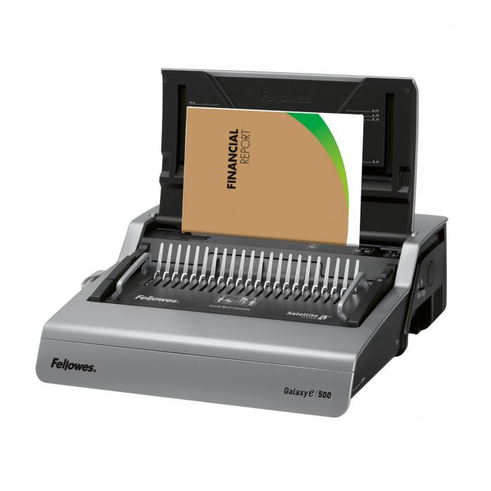 Výkonné zariadenie s elektrickým dierovaním a jednoduchou obsluhou vhodné do kancelárii s častým viazaním dokumentov. Súčasne predieruje do 25 listov papiera A4 80 g. Zviaže až do 500 listov 80 g papiera (priemer hrebeňa 6 až 51 mm). Hmotnosť zariadenia 13,5 kg. Súčasťou balenia sú hrebene a obálky na zviazanie 20 dokumentov.