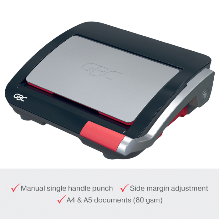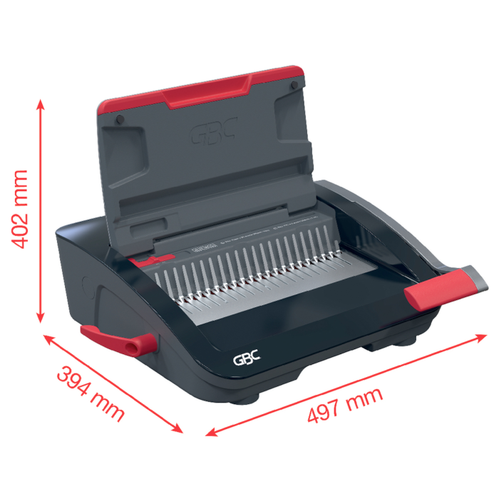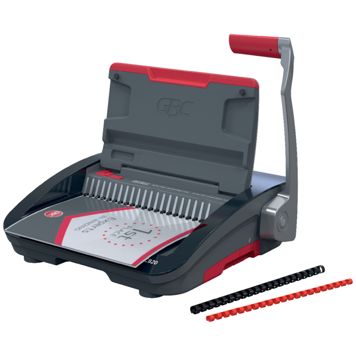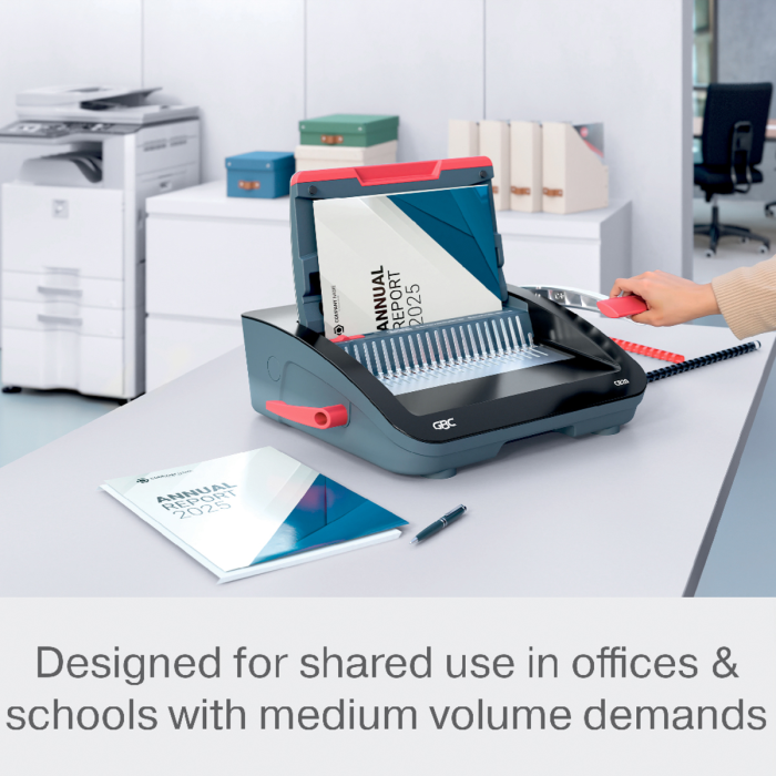 • spoľahlivý a kompaktný ručný viazač s plastovými chrbtami, navrhnutý na zdieľané použitie v kancelárskom a školskom prostredí s bežnými nárokmi na objem väzby