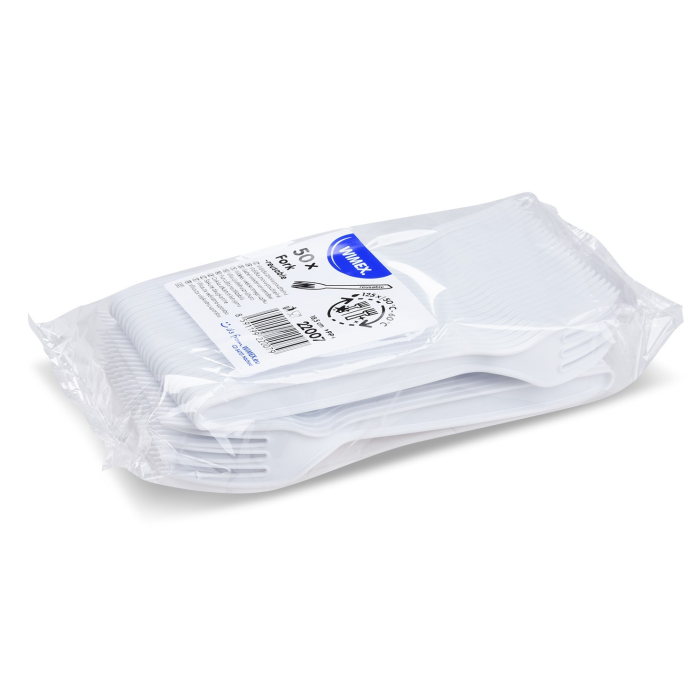 Vidličky plastové znovu použiteľné biele 18,5 cm (50 ks)