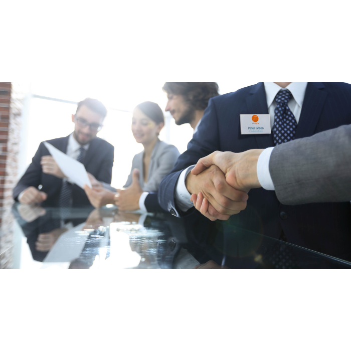 • Menovka so špeciálnym magnetickým zapínaním, ktoré zabraňuje skrúteniu, skĺznutiu alebo uvoľneniu menovky pri nosení
