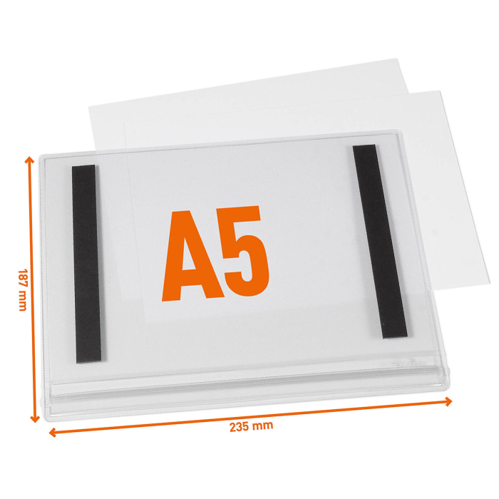 Vrecká na dokumenty vo formáte A5, ktoré sú ideálne na vystavenie informácií vonku alebo vo vlhkých vnútorných priestoroch, ako sú záhradné centrá, sauny alebo bazény, kde môžu byť cedule vystavené striekajúcej vode a postreku.