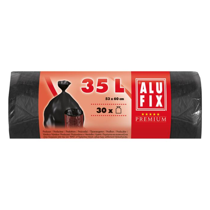 Vrecia na odpadky čierne, vyrobené z HDPE materiálu bez zápachu, vhodné do domácnosti alebo kancelárie na ľahší bežný odpad. Rozmery vreca 53 x 60 cm, objem 35 l,, množstvo 30 ks na rolke.