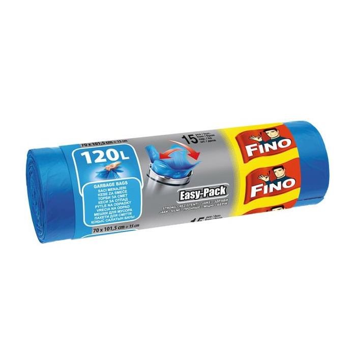 Vrecia zaväzovacie FINO Easy pack 120 ℓ, 22 mic., 70 x 102 cm, modré (15 ks)